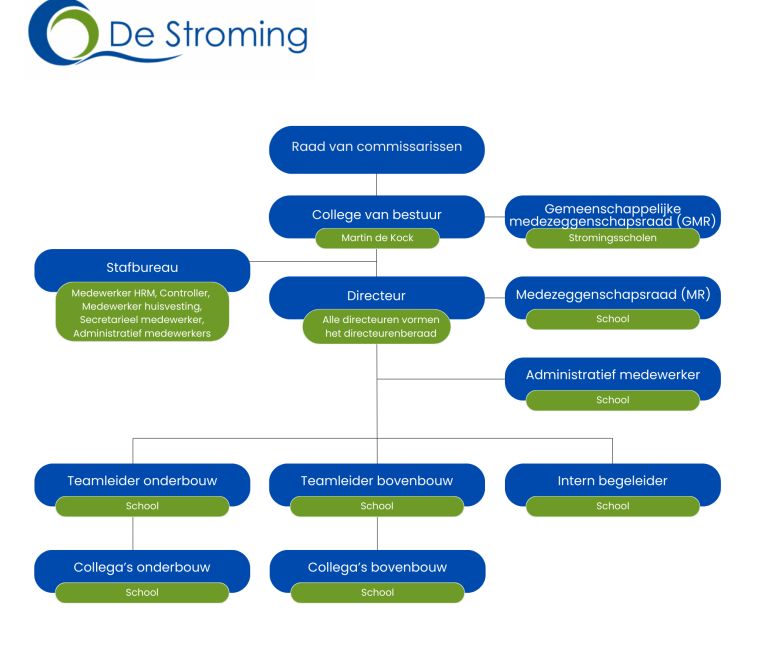 De Stroming is een stichting. Sinds 1 augustus 2018 heeft De Stroming een nieuw bestuursmodel en kent de stichting de volgende organen: